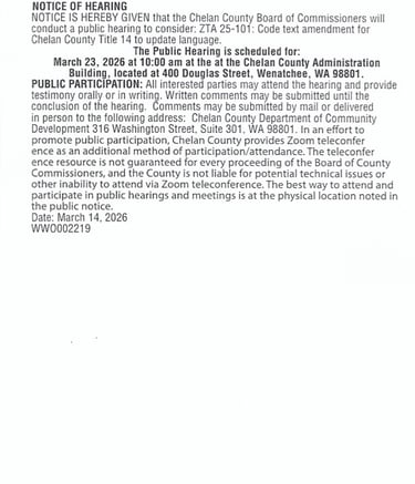 Visit us at www.co.chelan.wa.us or on Facebook